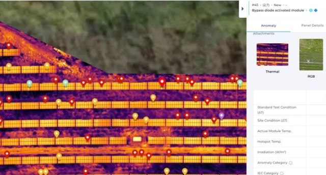 取得した画像をAI分析し、ホットスポット等の異常個所を自動抽出。