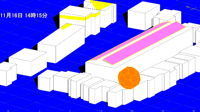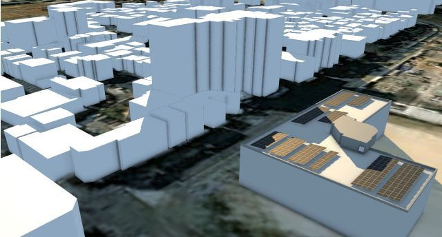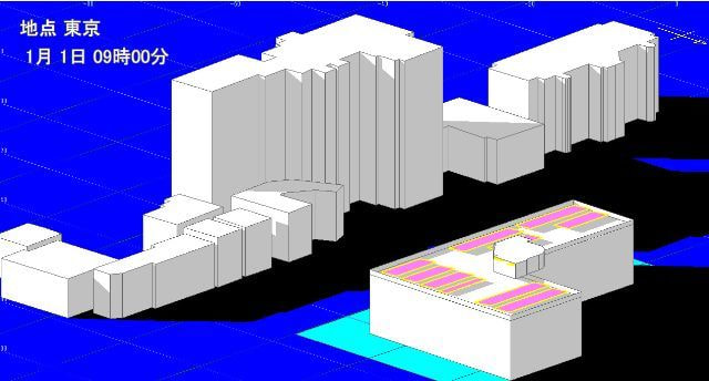 パネルのレイアウトと周辺建物を3Dモデル化することで、反射光による影響(光害)の有無を視覚的に確認することができます。