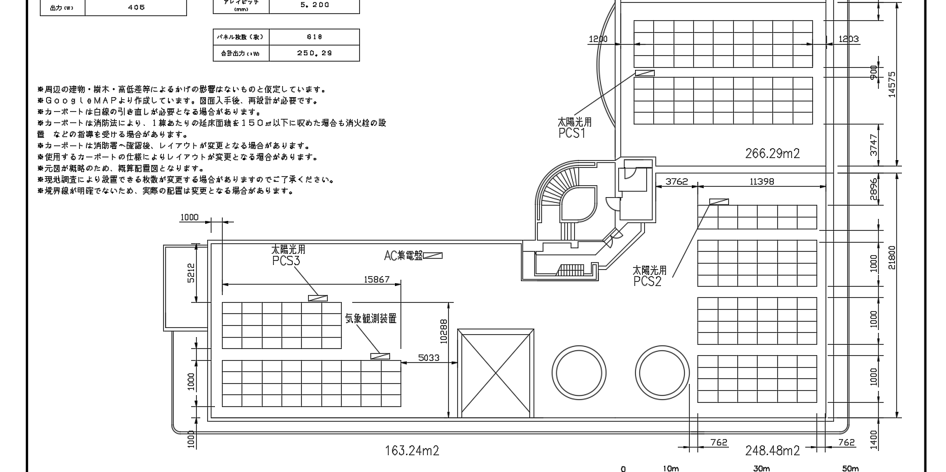 反射光の発生源となるパネルの傾斜角・方位角がわかる図面